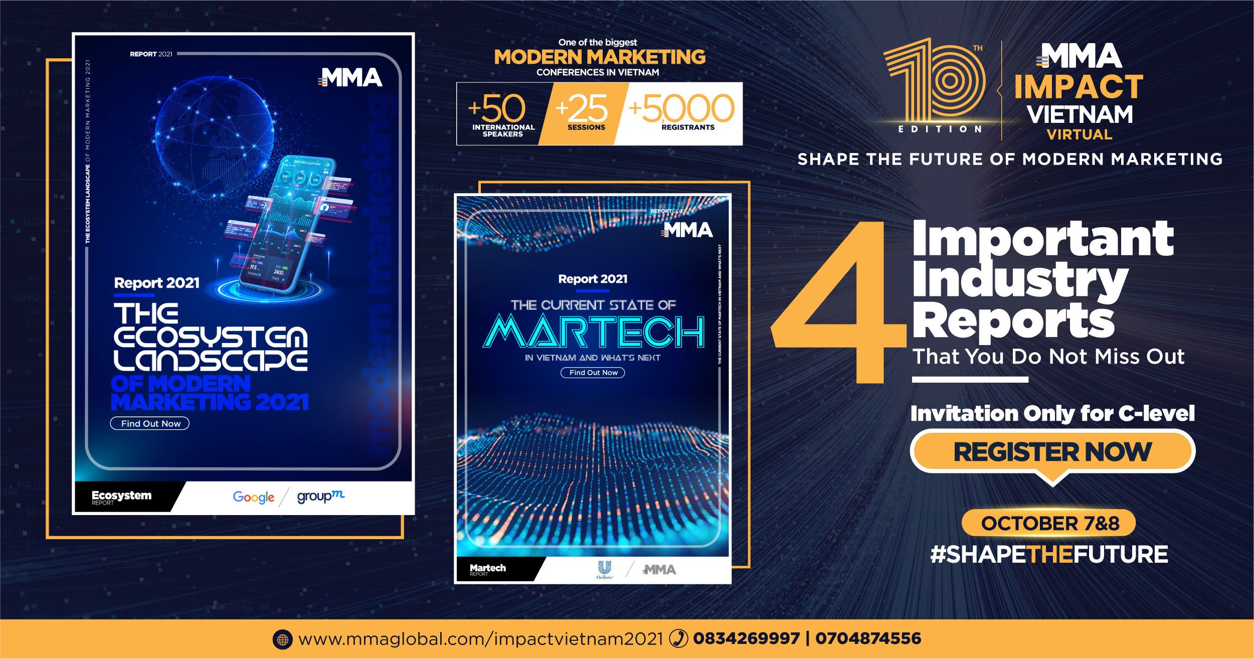 MMA Impact Vietnam Virtual 2021 được đánh giá là sự kiện lớn nhất về tiếp thị hiện đại năm 2021. Sự kiện được tổ chức bởi MMA Việt Nam sẽ thu hút hơn 5000 người tham dự khắp Châu Á. MMA Impact Vietnam Virtual 2021 quy tụ hơn 50 nhà lãnh đạo, họ là Tổng giám đốc, Chủ tịch các Tập đoàn; Giám đốc Marketing, Giám đốc khu vực… từ các doanh nghiệp lớn trong và ngoài nước.