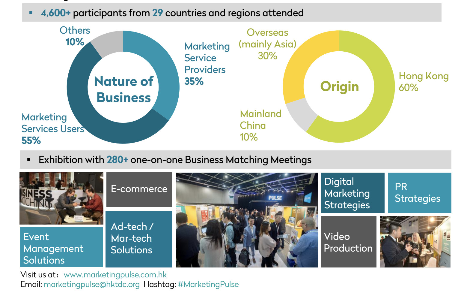 Hội Đồng Phát Triển Thương Mại Hồng Kông (HKTDC) xin trân trọng giới thiệu đến quý vị sự kiện MarketingPulse – một hội nghị chuyên ngành về marketing và branding ở Châu Á – Với chủ đề “Marketing for Good”, hội nghị này sẽ tập trung vào các chủ đề mới như lý do cần xây dựng thương hiệu, đổi mới kỹ thuật số, thương mại qua giải pháp livestream ở đại lục và xây dựng thương hiệu qua âm thanh… nhằm giúp các đơn vị tiếp thị, các thương hiệu và các doanh nghiệp vừa và nhỏ thích ứng với sự thay đổi lớn trong hành vi khách hàng trong thời đại dịch.